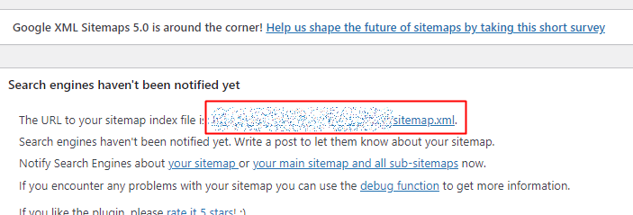 그러면 아래와 같은 화면으로 이동을 한다 그 중 아래 빨간박스 안에 있는 부분이 나의 사이트맵의 주소이다 한번 클릭을 해 보면 만들어진 사이트맵 으로 들어가는 걸 알 수가 있다