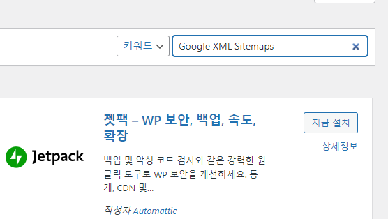 하여간 플러그인 새로추가로 갔으면 우측 상단을 보면 검색을 할 수가 있다 이 곳에서 Google XML Sitemaps 으로 검색을 해 본다 그러면 정말 많은 플러그인이 나온다