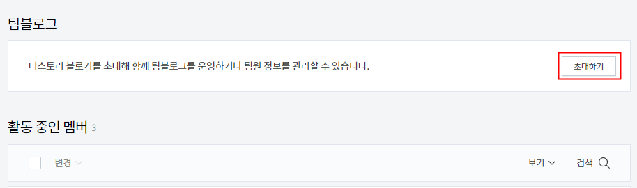 그러면 이렇게 팀블로그가 나오게 된다 여기에서 초대하기를 하면 된다는 말씀 아주 간단하게 사용을 할 수가 있다