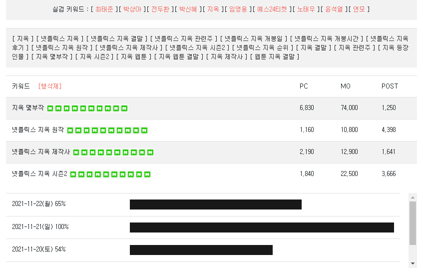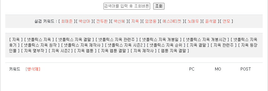 보면 실검 키워드가 있다 어떤 글을 작성을 해야할지 모르겠다 그러면 일단 아래의 실검 키워드를 한번 하나하나 클릭을 해 본다 그러면 세부 키워드를 볼 수가 있다 지금 상당히 인기가 있는 지옥 을 한번 클릭을 해 보겠다